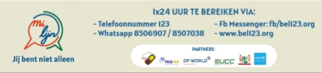 De Stichting Kinder- en Jongerentelefoon'(KJT), die voorheen 8 uren per dag te bereiken is geweest op het nummer 123, is nu 1 maal 24 uur beschikbaar. Behalve via de telefoon kunnen kinderen, jongeren en mensen die namens kinderen en jongeren een probleem hebben of in gevaar zijn of dreigen te komen, ook via Facebook en WhatsApp contact opnemen met de stichting.