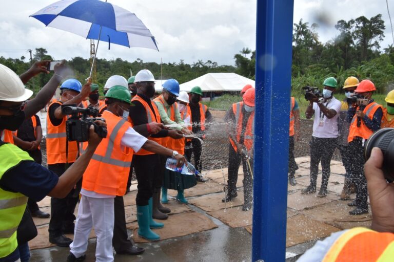 Met veel ceremonieel en toespraken is zaterdag het startsein gegeven voor het storten van een platform ten behoeve van een nieuwe drinkwaterinstallatie en aanleg van bijbehorende distributieleiding in Commewijne. De Surinaamse Waterleiding Maatschappij (SWM) startte in februari vorig jaar met de bouw van een waterproductiecentrum te La Liberté in Commewijne, met een productiecapaciteit van 500 kubieke meter per uur. Hiermee moeten inwoners van Commewijne dagelijks schoon drinkwater uit de kraan zien stromen.