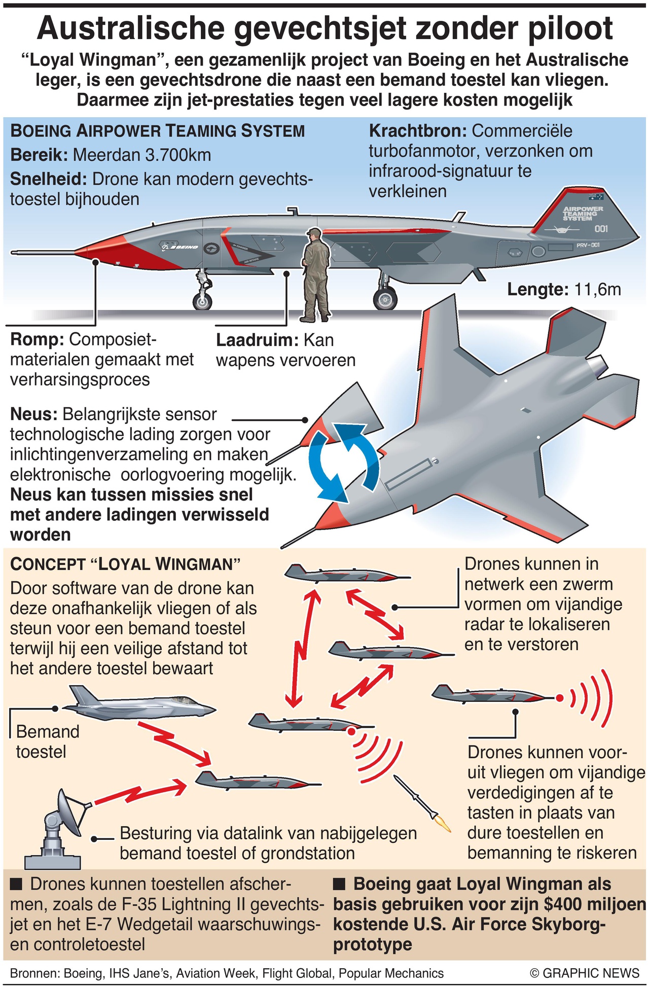 Boeing Australia heeft maandag (1 maart) vanaf een Australische luchtmachtbasis een eerste vlucht uitgevoerd met de onbemande Loyal Wingman. Kort na deze vlucht kreeg Boeing opdracht van de Australische regering opdracht nog eens drie prototypes te bouwen.