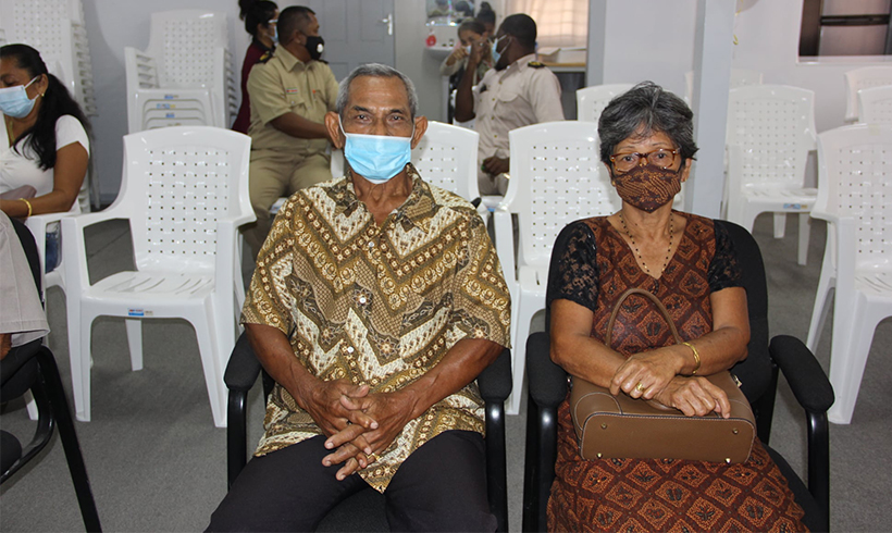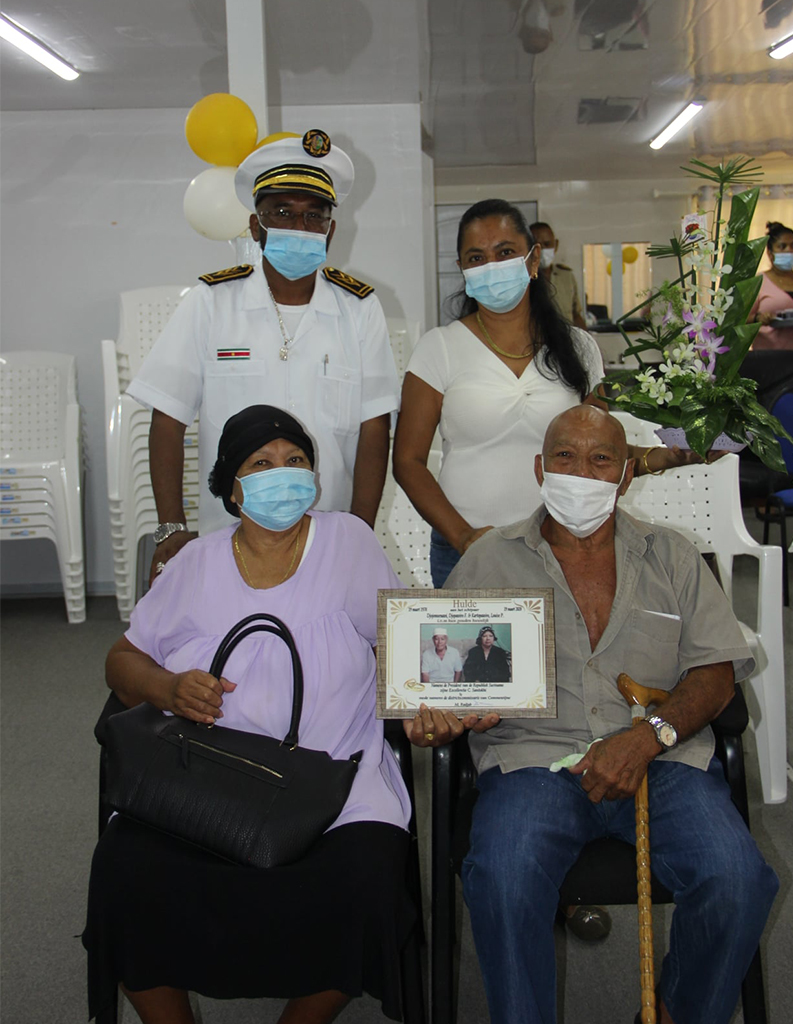 In de laatste week van de maand februari is van start gegaan met de huldiging van jubilarissen (echtparen) in het district Commewijne. Op donderdag 4 maart 2021 werden op het Commissariaat de echtparen Soemotinojo-Soewondo , Ghisiawan-Brispat, Warno-Karijoredjo, Djojomoenawi-Kartopawiro en Khodabaks-Baksoellah in de bloemetjes gezet. Dit in verband met de huldiging van hun 50 jarig huwelijksjubileum (gouden huwelijk). De Districtscommissaris Mohamedsafiek Radjab heeft de felicitaties overgebracht en de gebruikelijke enveloppen overhandigd.