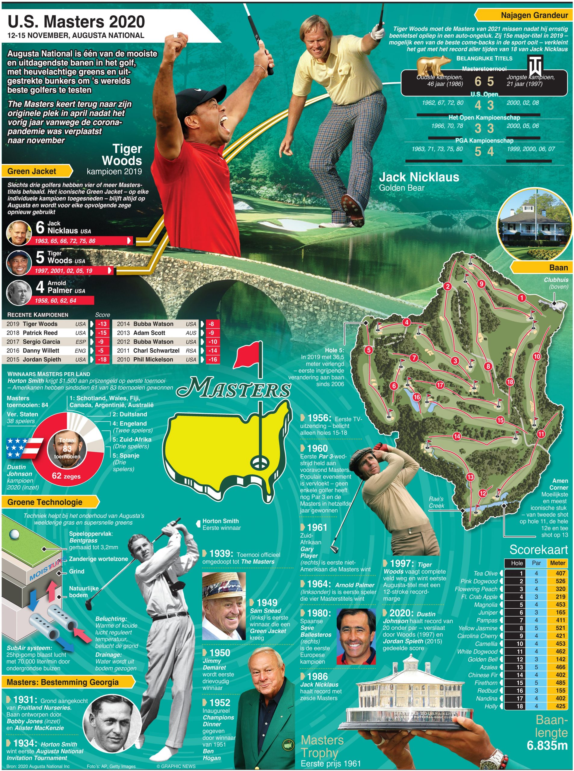 Tiger Woods will miss 2021 Masters after sustaining serious leg injuries in car crash in February. His fifth Masters title in 2019 placed him one victory behind record holder Jack Nicklaus, who has won six times at Augusta