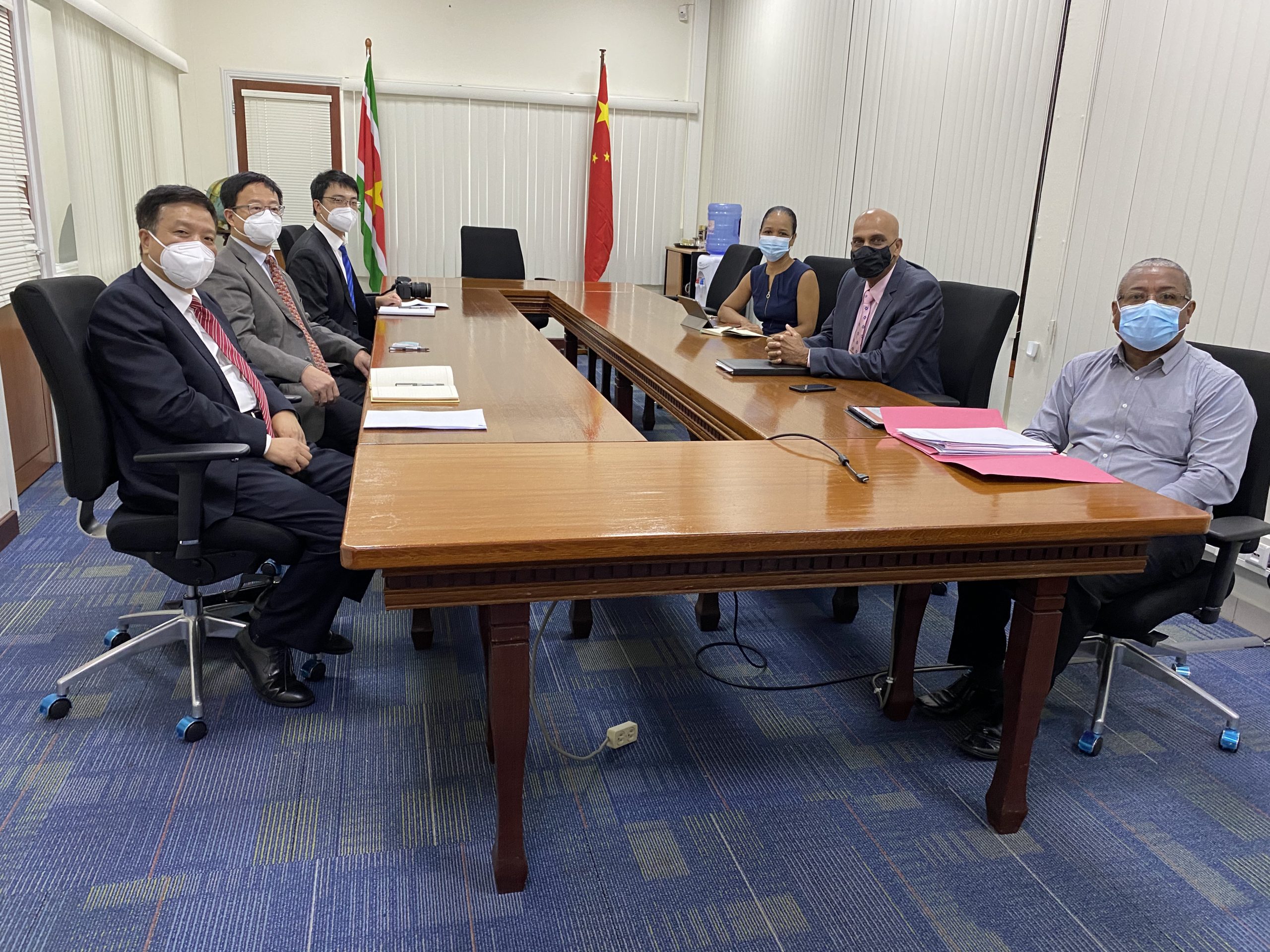 De Chinese ambassadeur is geïnformeerd over de huidige financieel-economische situatie in Suriname, de relatie met IMF en overige internationale partners en de grote uitdagingen die hiermee gepaard gaan. De ambassadeur gaf aan dat vele landen nu moeilijke economische tijden meemaken en dat de Covid-19 pandemie daar ook toe heeft bijgedragen. Zowel de minister als de ambassadeur was van mening dat de enige oplossing is om de eigen ontwikkeling zo snel mogelijk op gang te brengen.