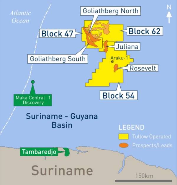 Het Britse Tullow Oil heeft donderdag in een persbericht bekendgemaakt, dat de exploratieput Goliathberg-Voltzberg Noord (GVN), geboord in Blok 47, voor de kust van Suriname, de totale diepte heeft bereikt en een reservoir van goede kwaliteit heeft aangetroffen, maar slechts een kleine hoeveelheid olie.