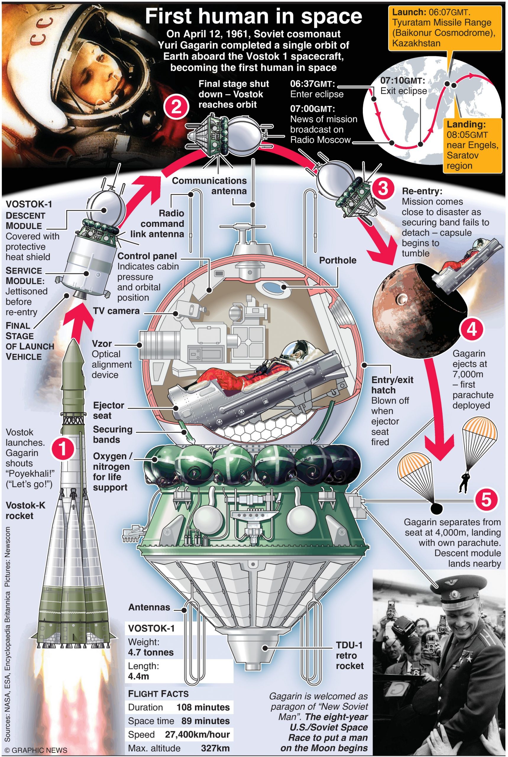 Op 12 april is het precies zestig jaar geleden dat de Russische kosmonaut Joeri Gagarin als eerste mens de dampkring verliet.