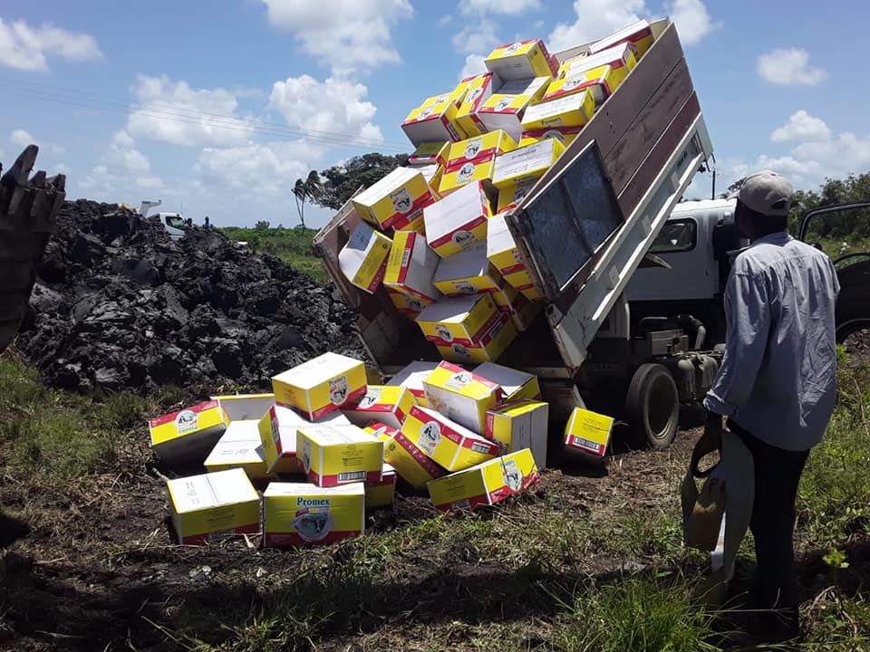 De autoriteiten hebben woensdag in alle stilte, er werd geen ruchtbaarheid aan gegeven, een grote hoeveelheid in beslag genomen producten – vier containers- bij een ondernemer in Nickerie, vernietigd. De producten, met een waarde van zo’n US$ 600.000, zijn gedumpt en onder aarde bedolven op de algemene vuilnisbelt van het district. De in beslag genomen producten, waaronder melkpoeder, kippenbouten en blikjes melk, zouden niet goed meer zijn geweest en ook zouden de bijbehorende documenten niet in orde zijn geweest. De producten zijn in bijzijn van vertegenwoordigers van de douane, de afdeling Fraude van het Korps Politie Suriname, het Openbaar Ministerie, het ministerie van Landbouw, Veeteelt en Visserij (LVV, de Veterinaire Dienst) en het Bureau voor Openbare Gezondheidszorg vernietigd. De ondernemer is echter verbijsterd over de actie van de autoriteiten en begrijpt er ook helemaal niets van. Het bedrijf zit met veel vraagtekens.