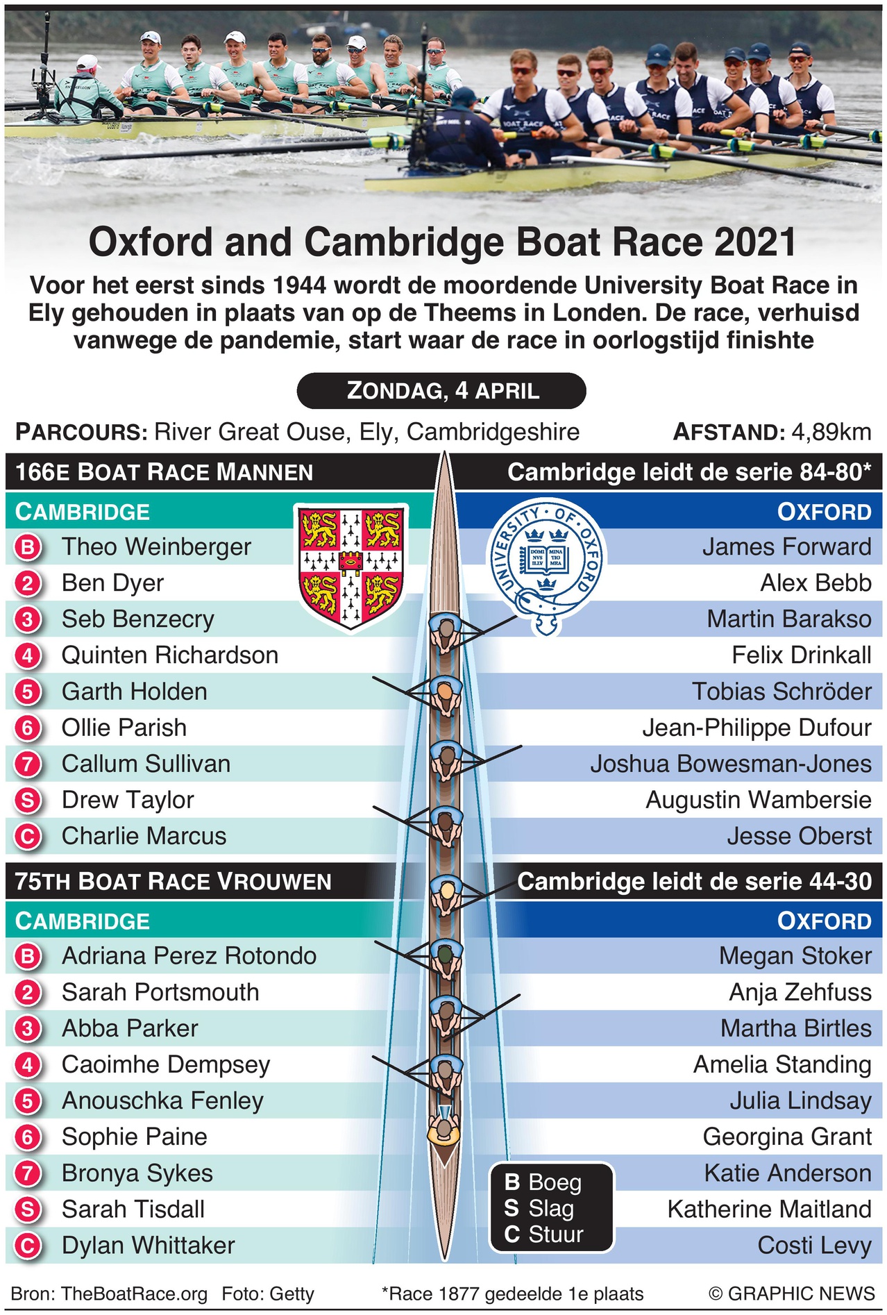 April 4, 2021 – The Oxford and Cambridge Boat Race returns for the 166th men’s event. For the first time since 1944, the gruelling University Boat Race will be held in Ely rather than on the River Thames in London — moved due to the pandemic, the contest will begin where the wartime race finished.