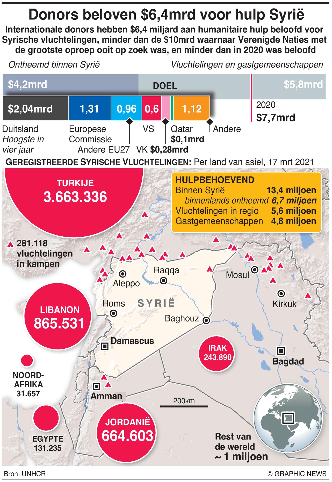 March 31, 2021 – International donors have pledged $6.4 billion in humanitarian aid for Syrian refugees, short of the $10bn that the United Nations was seeking
