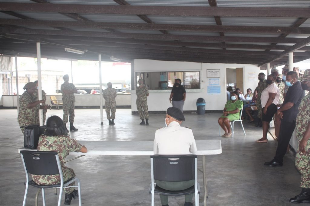 Het ministerie van Defensie heeft in het kader van de bewustwording tegen Covid-19 dinsdag een reeks aan voorlichtingssessies gehouden om het personeel te informeren over het vaccineren met het AstraZeneca-vaccin. Zowel het militair als burgerpersoneel werden hierbij gelijk in de gelegenheid gesteld om zich te laten registreren. Majoor Eleen Simson, arts binnen het Nationaal Leger, zegt dat militairen altijd nog de vrije keus hebben om zich tegen het virus te vaccineren. 60-plussers en 40-plussers met een aandoening vallen onder de prioriteitsgroep. “Alle gepensioneerde militairen die boven de 60 jaar zijn en die hun naam hebben opgegeven, worden gezet voor een afspraak. En alle 40-plussers die hebben aangegeven dat ze een aandoening hebben, waaronder diabetes, hypertensie (bloeddruk), epilepsie, kanker, HIV, jicht en overgewicht, worden ook gezet voor een afspraak”, benadrukt Simson. Op het terrein van het ministerie aan de Kwattaweg hebben zich dinsdag 45 personen geregistreerd. Zowel majoor Simson en lieutenant Sherilyn Djojomoenawi waren belast met de voorlichtingssessie. Zij hebben hierbij ook diverse vragen van de manschappen aangehoord en beantwoord. De bedoeling is dat hiermee alle twijfels en onduidelijkheden over het vaccinatieproces wordt weggewerkt. Majoor Simson voegt eraan toe dat zolang de vaccinatiecampagne doorgaat, een ieder zich door mag laten registreren. Dan kan via de Covid-Hotline van Defensie op het contactnummer 8410952. Ook is de onlineregistratie mogelijk via www.laatjevaccineren.sr.