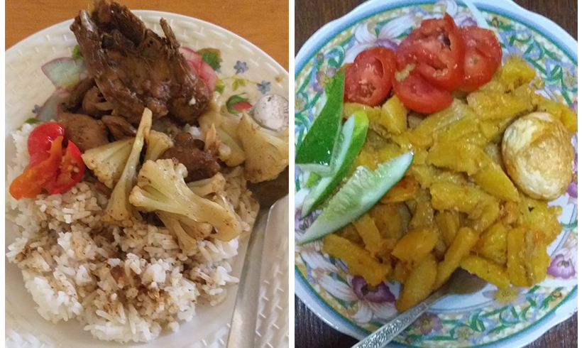 Huize R. had uitgekookte rijpe banaan en ei gebakken in knoflook, peper komkommer en tomaat.