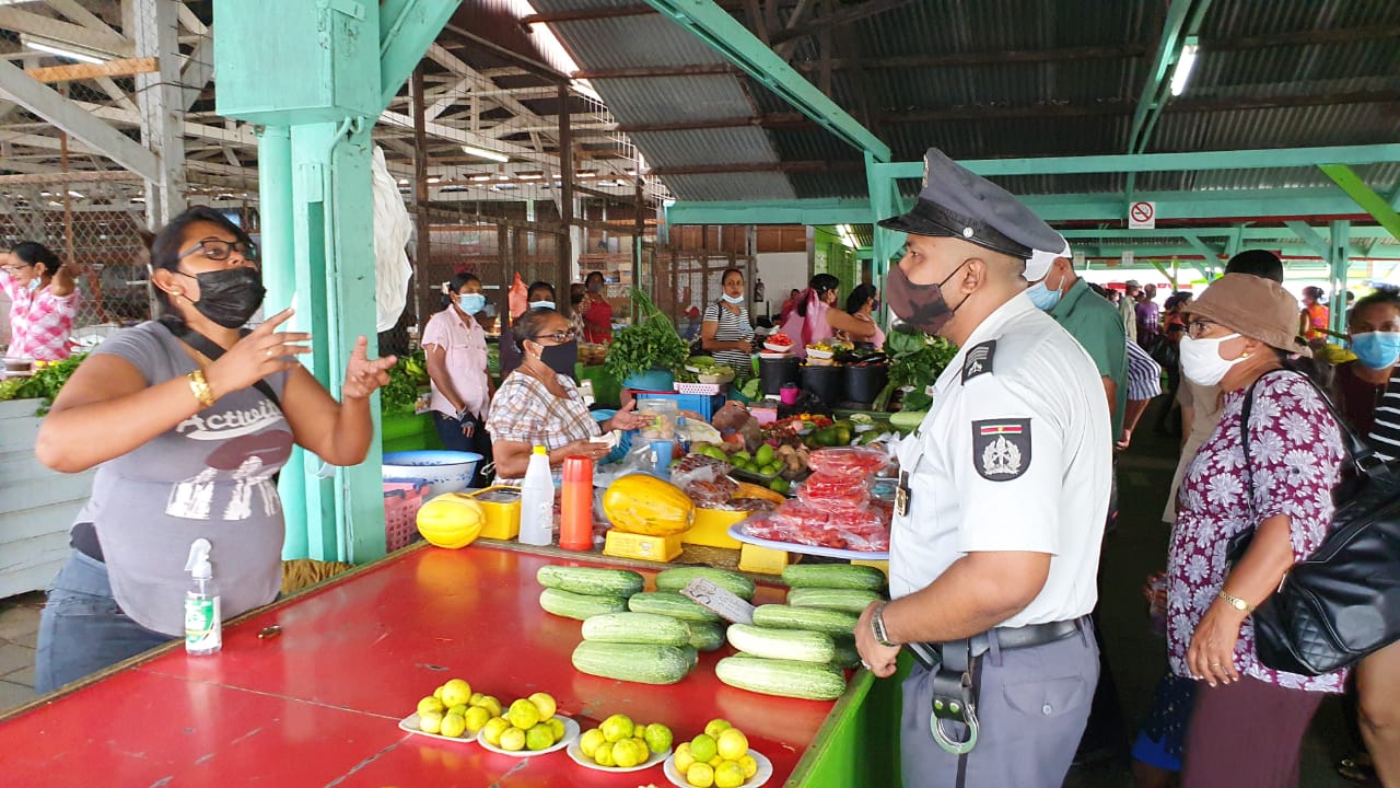 Op foto’s en video’s die op social media circuleren, was te zien, dat de markt te Nieuw-Nickerie een en al bedrijvigheid was en dat de meeste standhouders wel – zij het niet allemaal op de correcte wijze – een mond-/neuskapje droegen.