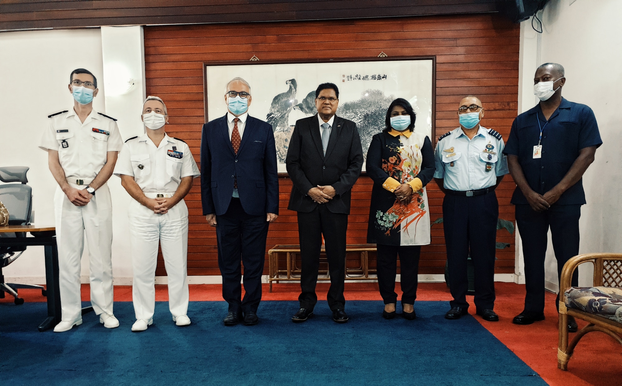 Tijdens het bezoek aan het staatshoofd waren ook aanwezig Krishna Mathoera van Defensie, bevelhebber Robert Kartodikromo en regeringsadviseur Humphrey Tjin Liep Shie. Minister Mathoera zegt dat het bezoek van de Fransen de lange samenwerking markeert die Suriname met Frans-Guyana en Frankrijk heeft. Deze samenwerking bestaat onder meer uit gezamenlijke patrouilles op de Marowijnerivier, trainingen, informatie delen en ondersteuning met equipment uit Frans-Guyana en Frankrijk, zo meldt het ministerie van Defensie donderdag 15 april.