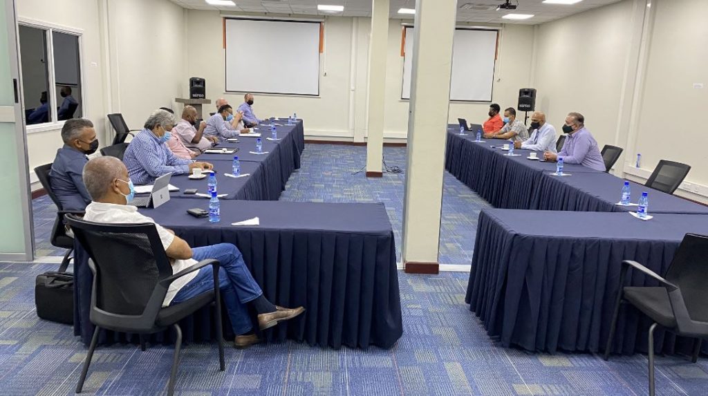 Minister van Financiën en Planning Armand Achaibersing heeft donderdag met zijn staf gesprekken gevoerd met lokale aannemers om te proberen samen tot herschikking van de opgelopen schulden te komen alsmede herinrichting van de nog uit te voeren projecten, zo bericht het ministerie vrijdag 16 april.