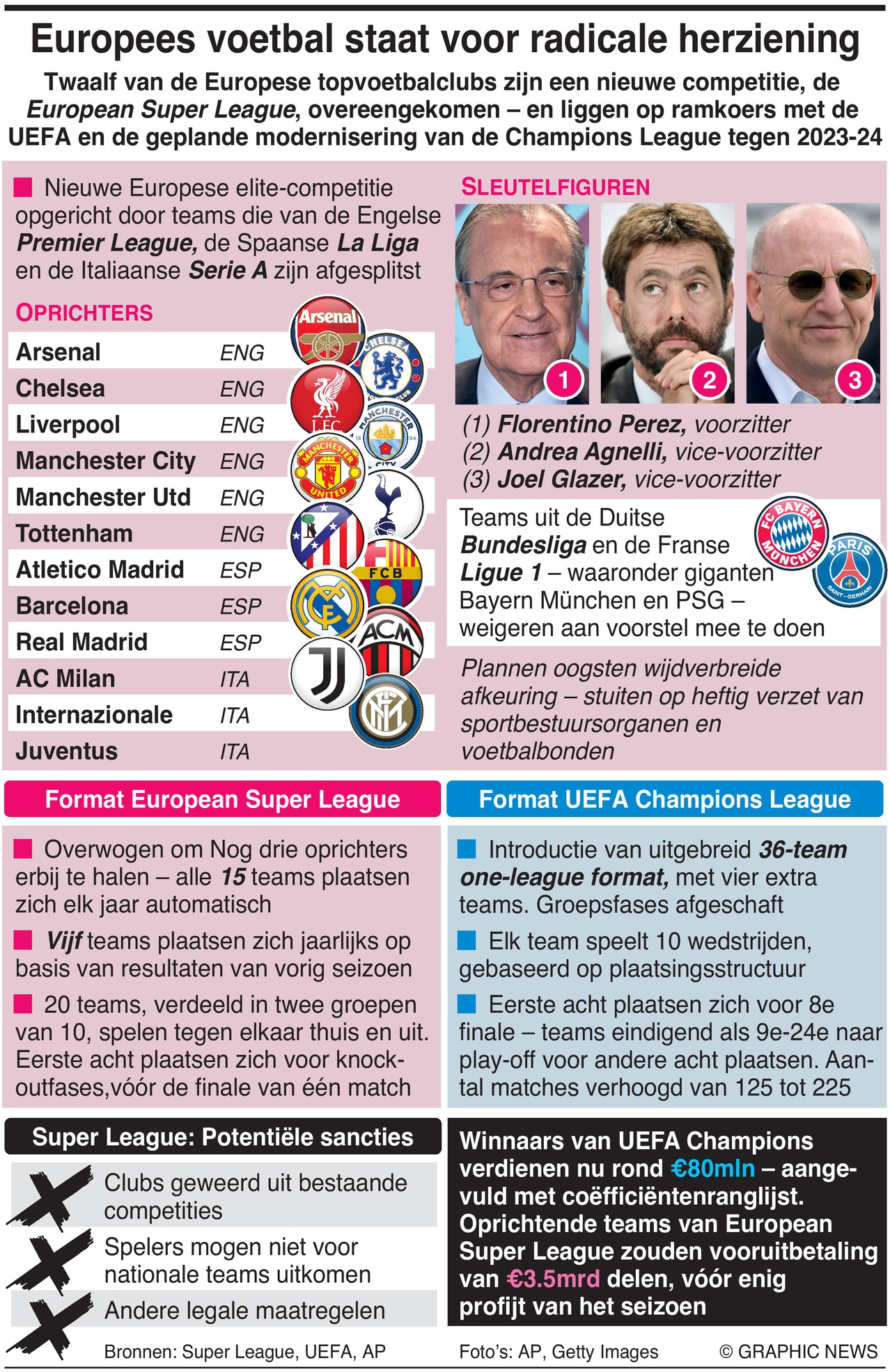 The European Super League is a new elite competition established by 12 breakaway teams from the English Premier League, Spanish La Liga and Italian Serie A. The proposals are in direct conflict with UEFA’s planned expansion of the Champions League to a 36-team single-league format.