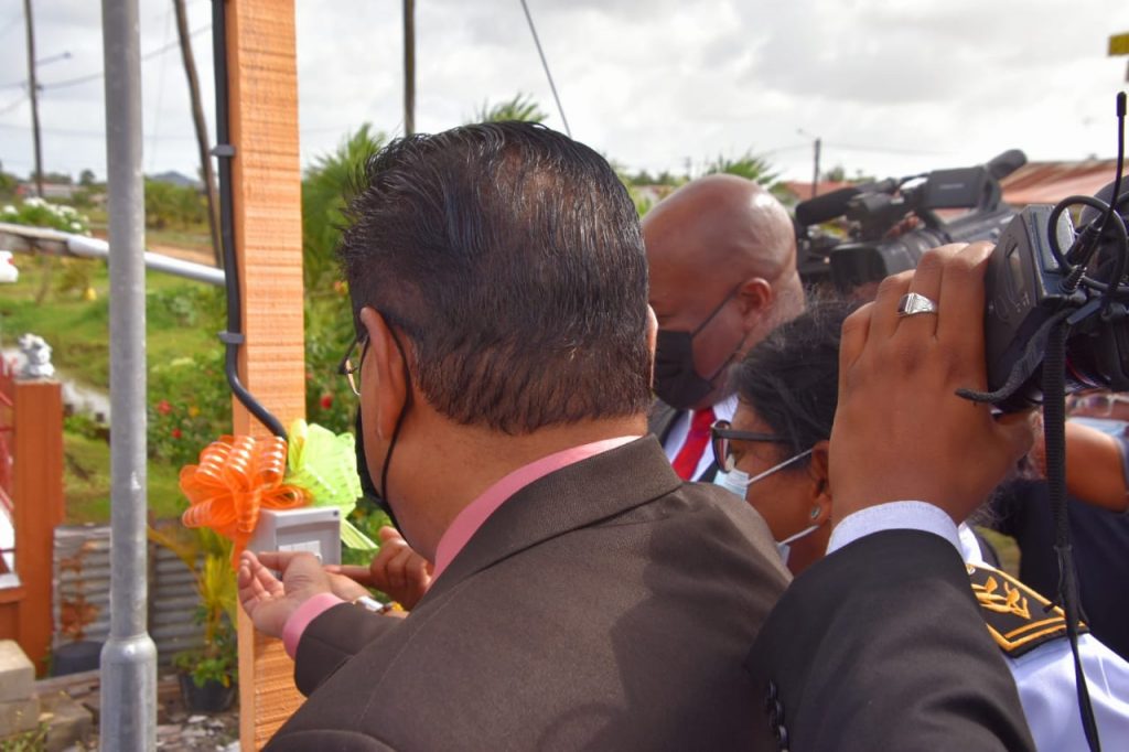 In aanwezigheid van vicepresident Ronnie Brunswijk, minister Kenneth Amoksi van Natuurlijke Hulpbronnen ad interim en minister Sewdien van LVV heeft president Santokhi de oplevering van het elektrificatie project van de Giebelstraat en omgeving in de Van Pettenpolder bijgewoond.