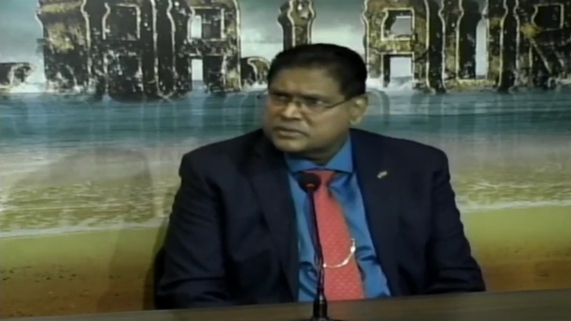 President Chandrikapersad Santokhi ging hier zaterdagochtend, 24 april, in gesprek met presentator Faried Pierkhan van het programma Kal Aaj Aur Kal op RBN TV, kort op in.