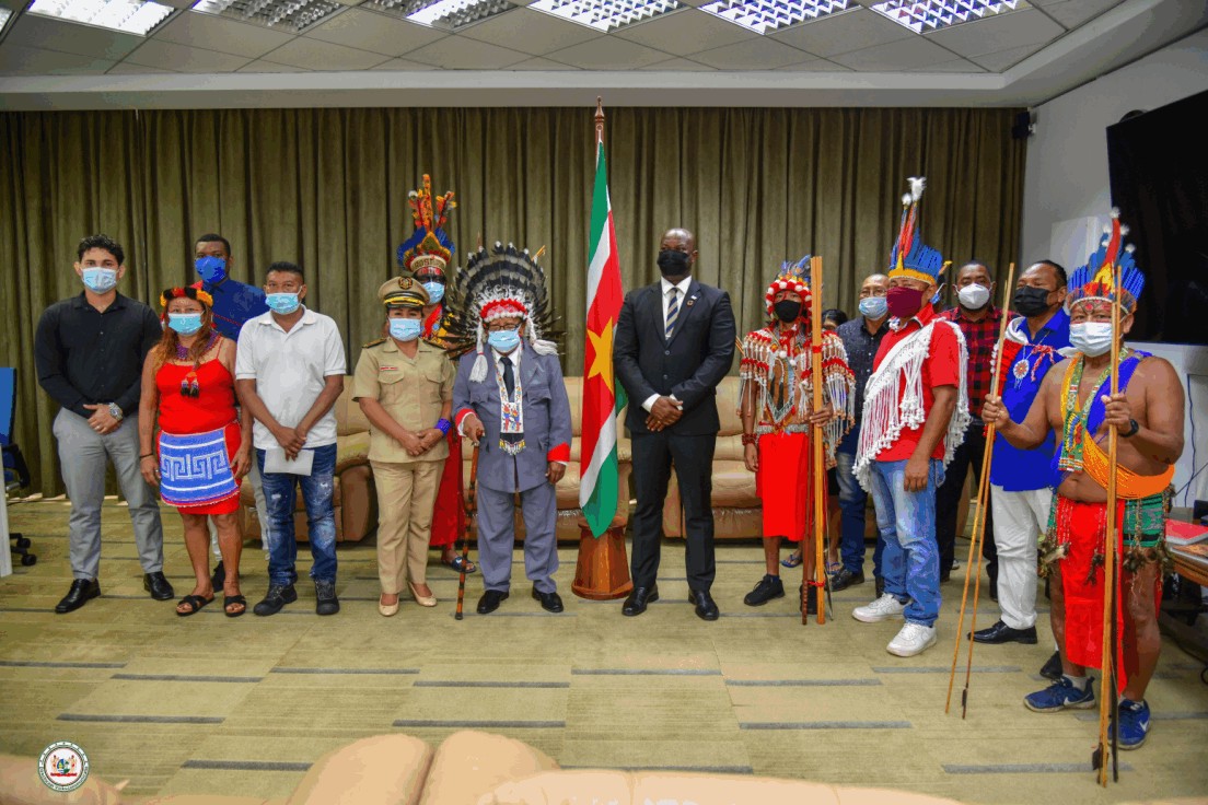 De granman werd vergezeld door vertegenwoordigers van de stammen van de Arowakken, Caraïben en Wayana’s. Ook was de districtscommissaris van Sipaliwini van het ressort Coeroeni, Merilu Sapa, aanwezig.