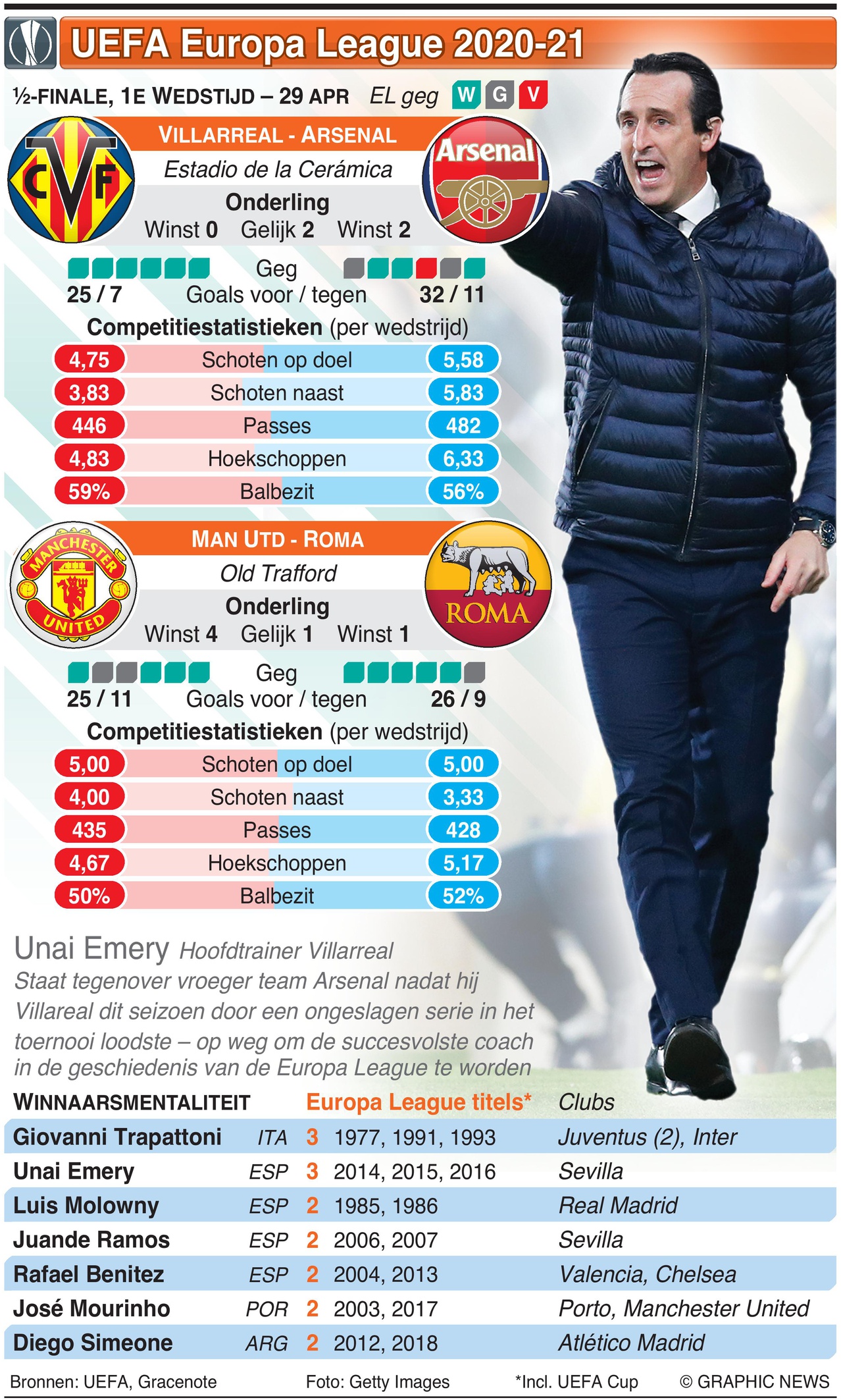 April 29, 2021 – UEFA Europa League Semi-final first leg matches, including match-ups between Villarreal and Arsenal at the Estadio de la Ceramica, and Manchester United against Roma at Old Trafford. The second leg for these matches takes place on May 6.