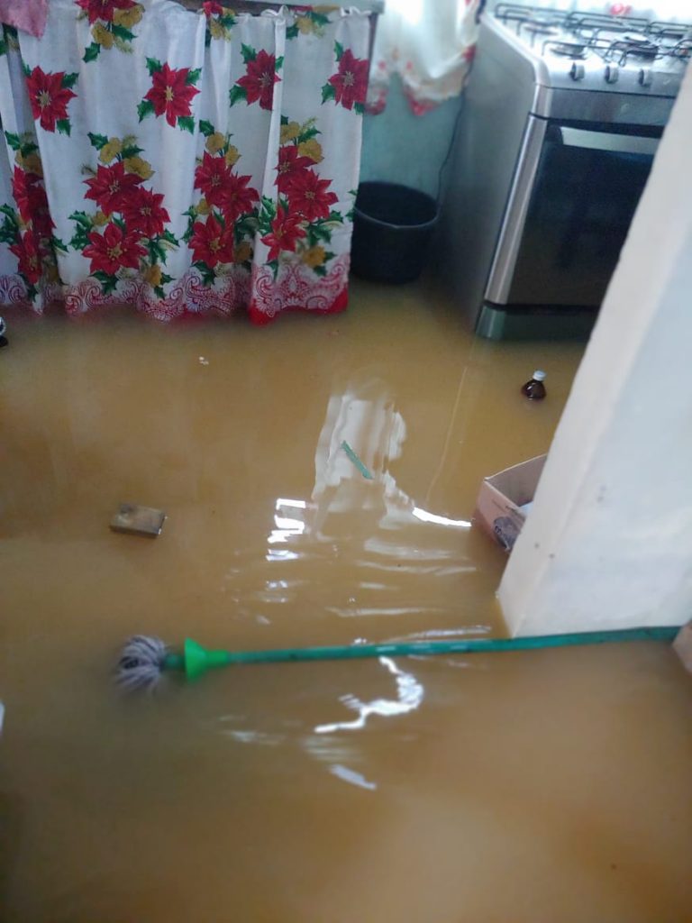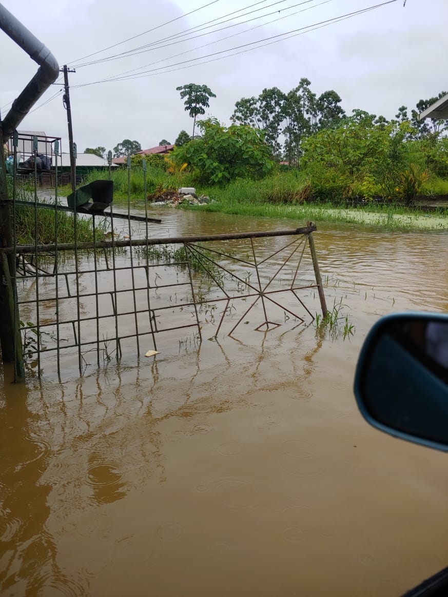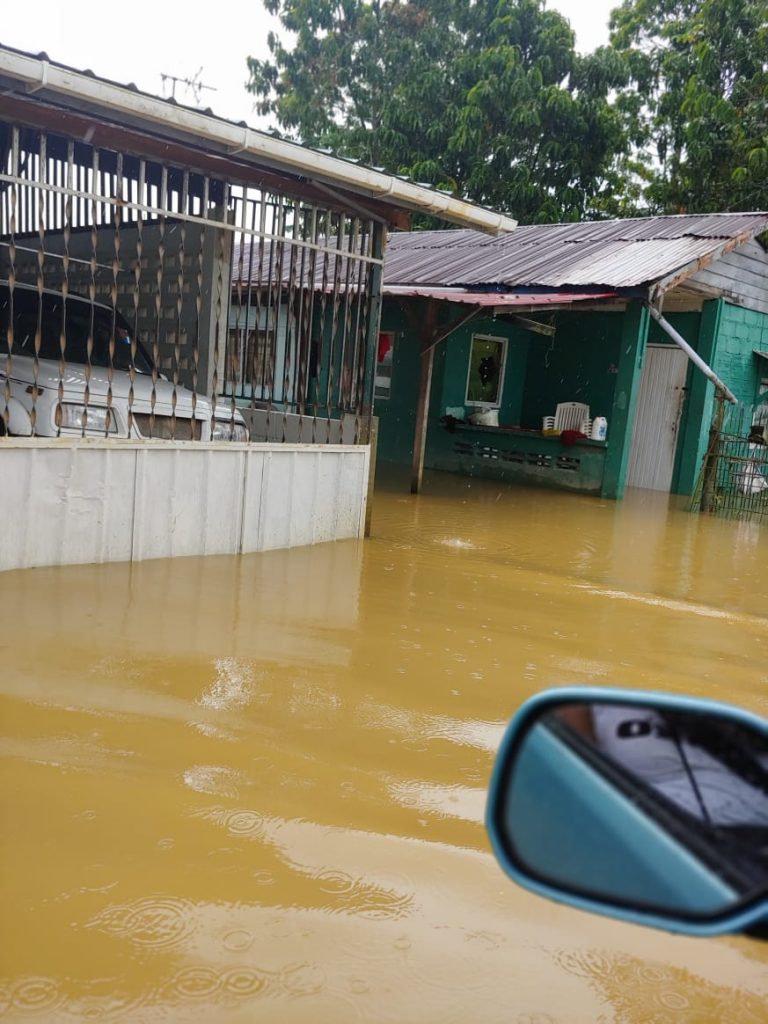 Zo ook de bewoners aan de Rampersadweg te Welgedacht C, waar nu de weg, maar ook woningen en percelen, onder water staan.