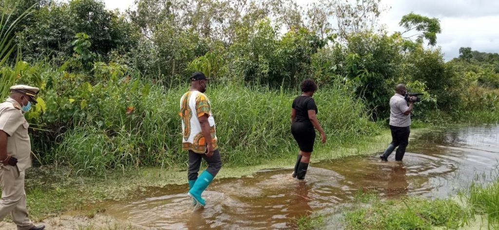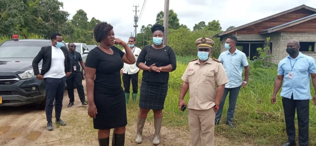Brunswijk ging samen met districtscommissaris Shafiek Goelaman en het Assembleelid Miquella Huur (Pertjajah Luhur) de situatie in de omgeving van de onder water staande Abigailslustweg bekijken.