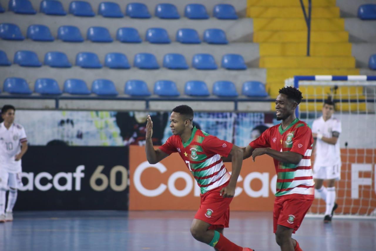 Het Surinaamse zaalvoetbalteam heeft dinsdagavond in Guatemala met 5-4 gewonnen van Mexico, nadat ze zelfs met 3-0 achter hadden gestaan. De ruststand was 3-3. De doelpuntenmakers van Suriname waren Vangelino Sastromedjo, Gillian Maatrijk, Nazario Doesburg, Roche Pita en een eigen doelpunt.