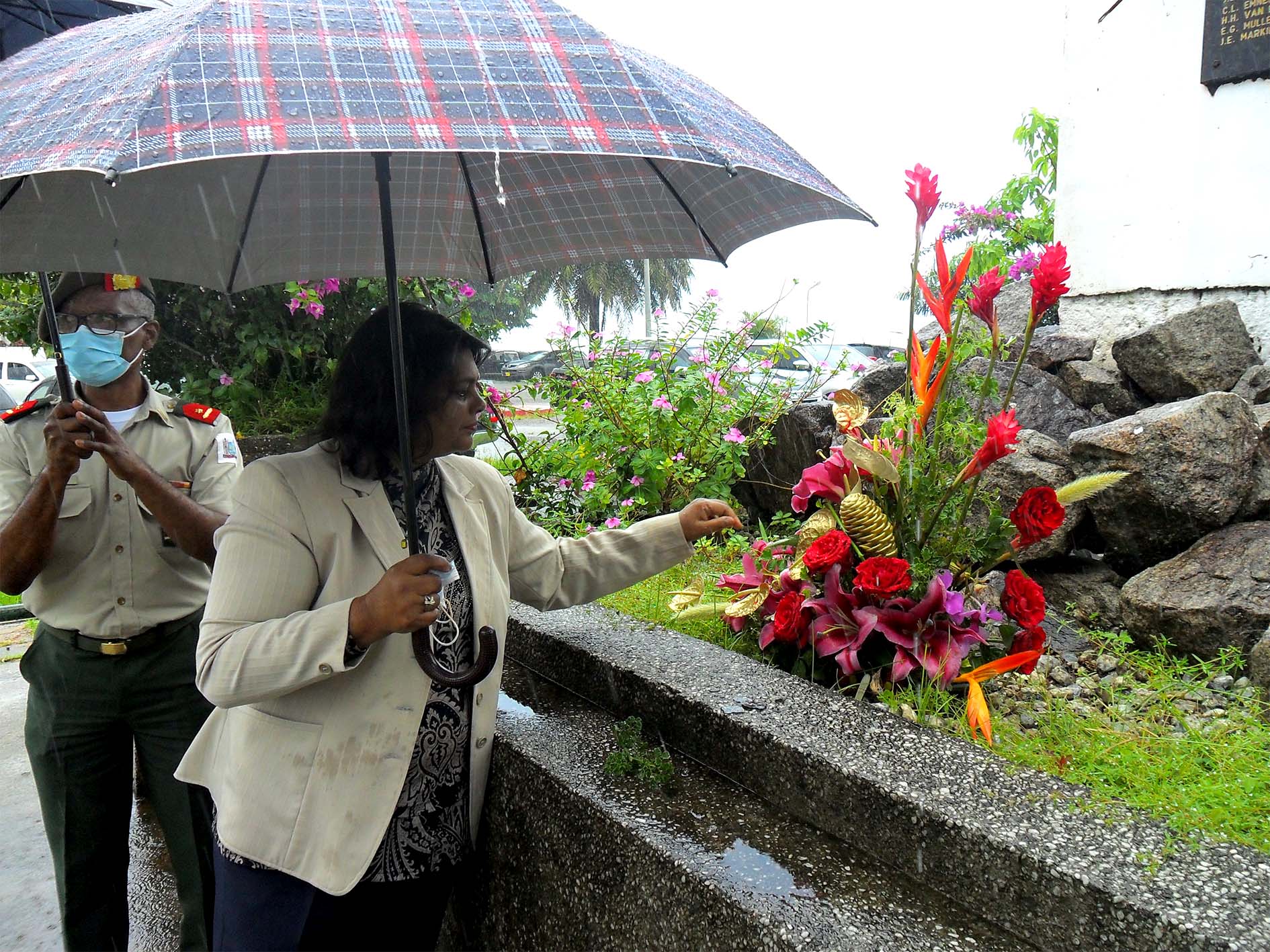 Mathoera trotseerde de regen om de waardering uit te brengen aan deze strijders. Vanwege de Covid-19 pandemie is er dit jaar geen ceremoniële herdenking gehouden.