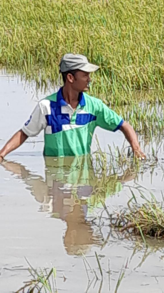 Op vele plekken, zoals in het Wageningen gebied, is het water zelfs de damwegen overgelopen. Nog deze week, uiterlijk volgende week, zou er nog geoogst kunnen worden. Daarna is de padi overrijp en zal oogsten zinloos zijn. Vele padiboeren die met deze situatie te kampen hebben zitten letterlijk met het handen in het haar.