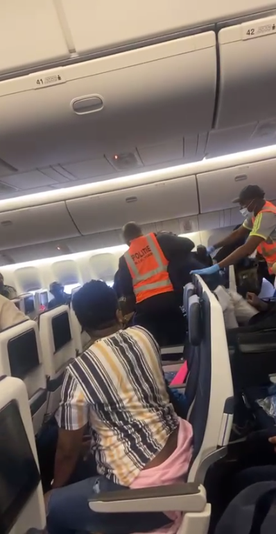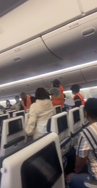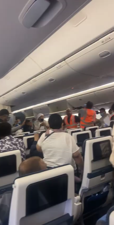 In het vliegtuig ontstond enig rumoer onder de passagiers en er zouden klappen zijn uitgedeeld, vanwege irritatie over de lange duur van de afhandeling van de vlucht.