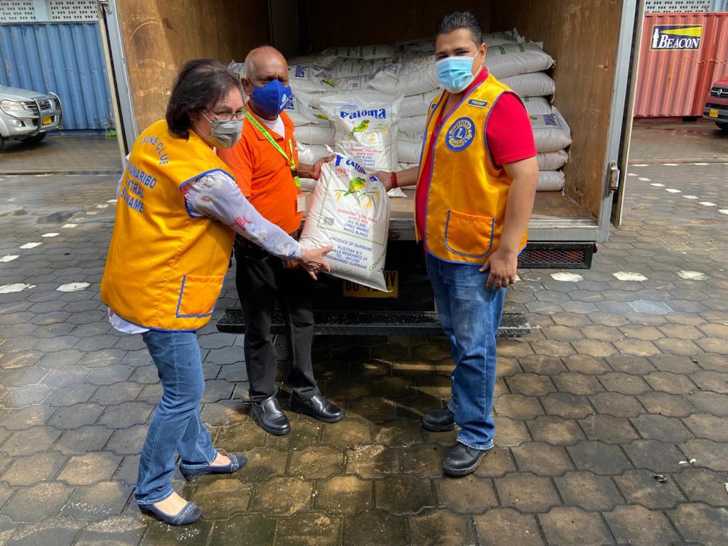 Lions Club Paramaribo Central had op 6 mei, in samenwerking met lions vrienden, waaronder Sun Rice NV Rijstverwerking en Export bedrijf, en Arni Food and Beverages NV, al respectievelijk 600 zakken rijst (10.000 kilogram) en 1.500 liter drinkwater geschonken aan het NCCR voor verscheping naar St. Vincent & the Grenadines.