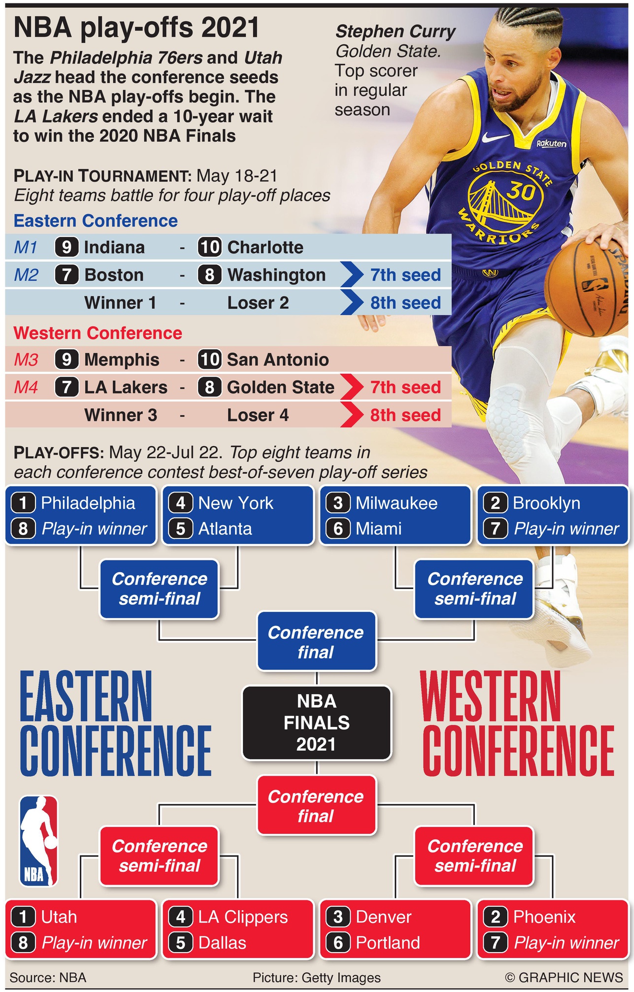 The NBA play-offs begin with a “Play-in Tournament” as a final chance for teams seeded from 7th to 10th in both the Eastern and Western conferences to battle for the four remaining play-off places. The top seeded teams will have two opportunities to qualify for the play-offs, while the lowest seeds will have to win twice.