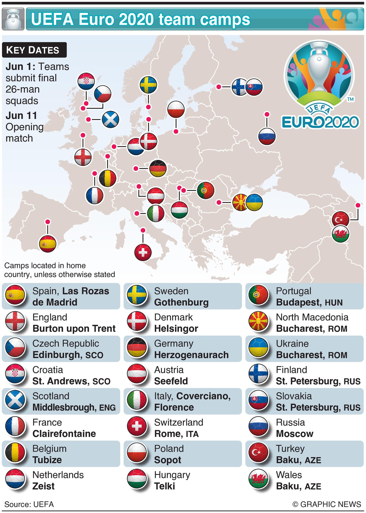 The tournament will be hosted in 11 cities across Europe, down from the original 12 after Dublin was forced to withdraw over Covid-19 issues.
