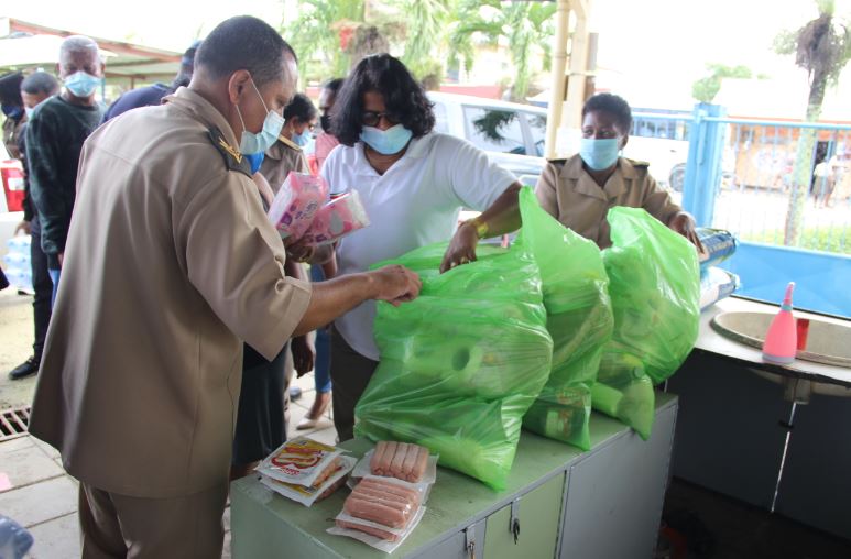 Ook zijn gezinnen tijdens het oriëntatiebezoek van districtscommissaris Senrita Gobardhan, enkele parlementariërs en districtsraadsleden voorzien van voedselpakketten.