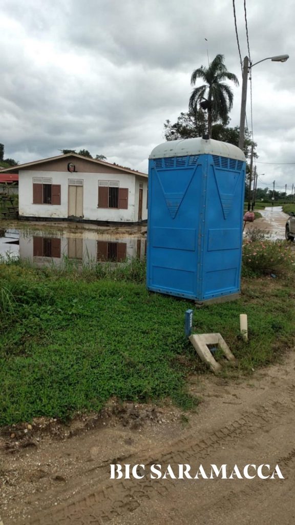 De minister van ROS heeft op voorstel van de districtscommissaris direct mobiele toiletten laten aanrukken om de 25 gezinnen die daar onder water zitten te helpen. Vooral voor de vrouwen en kinderen moeten deze mobiele toiletten als eerste hulp gezien worden.