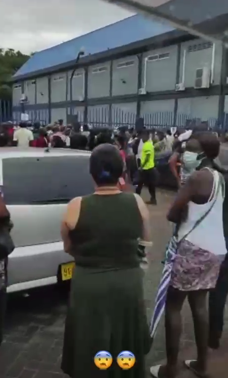 Vanuit een voorbijrijdende auto werden beelden geschoten van de drukte voor de bank en meteen gedeeld op social media.
