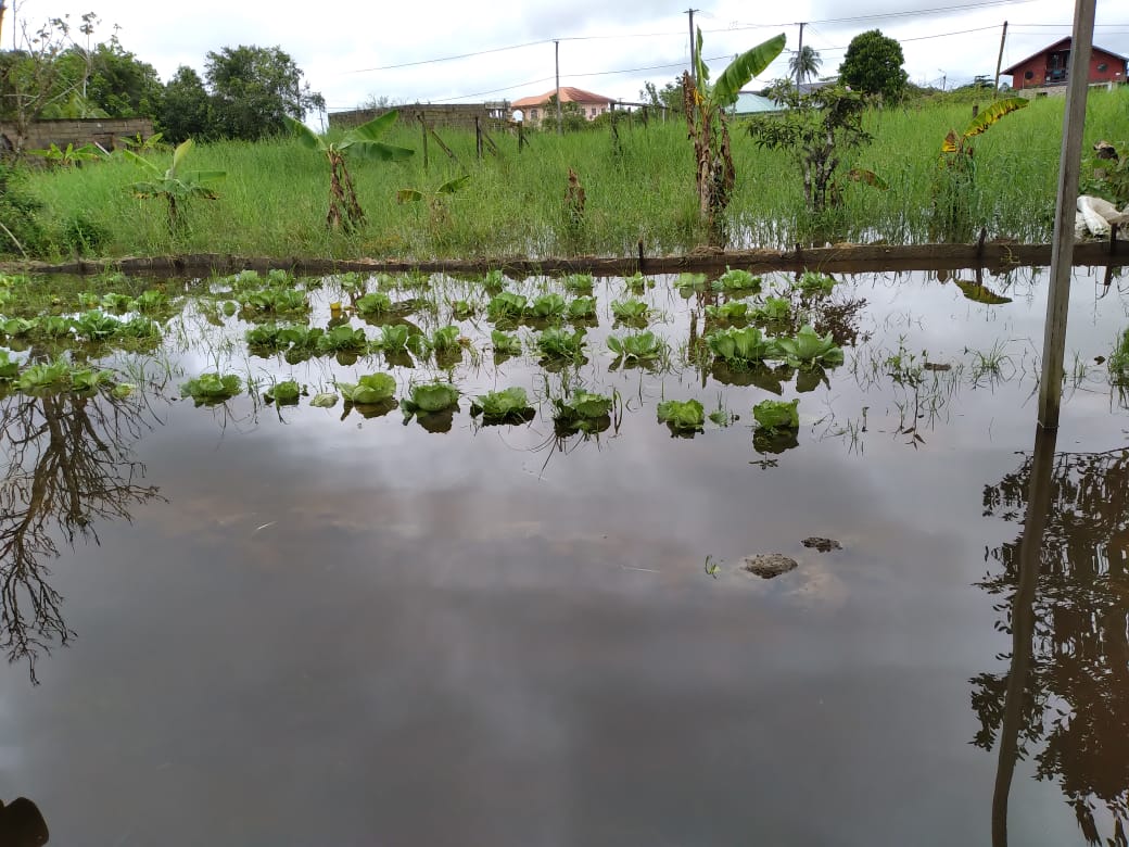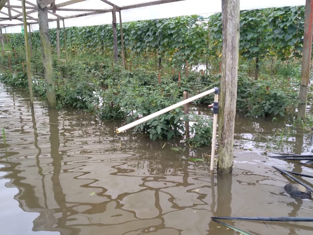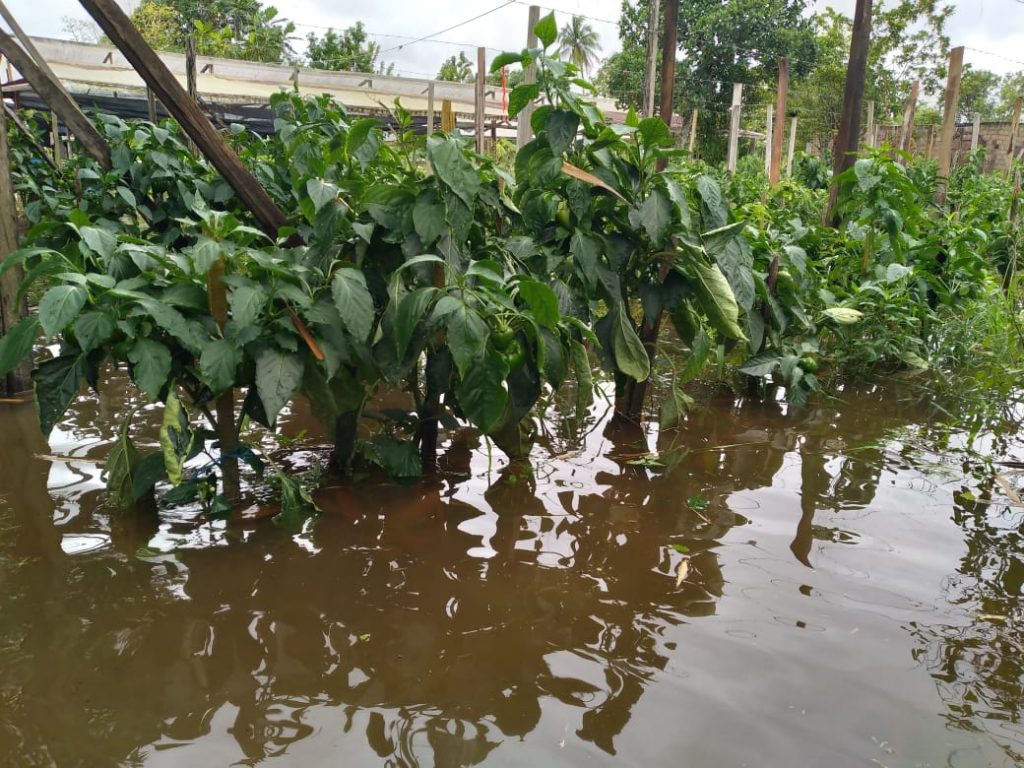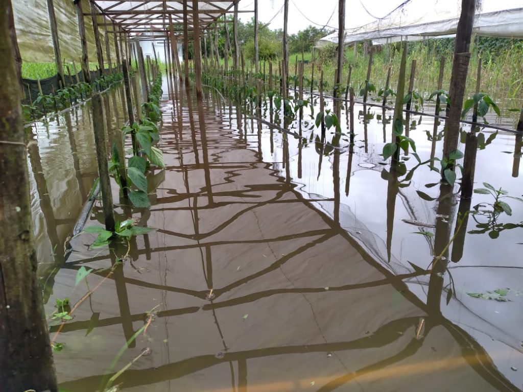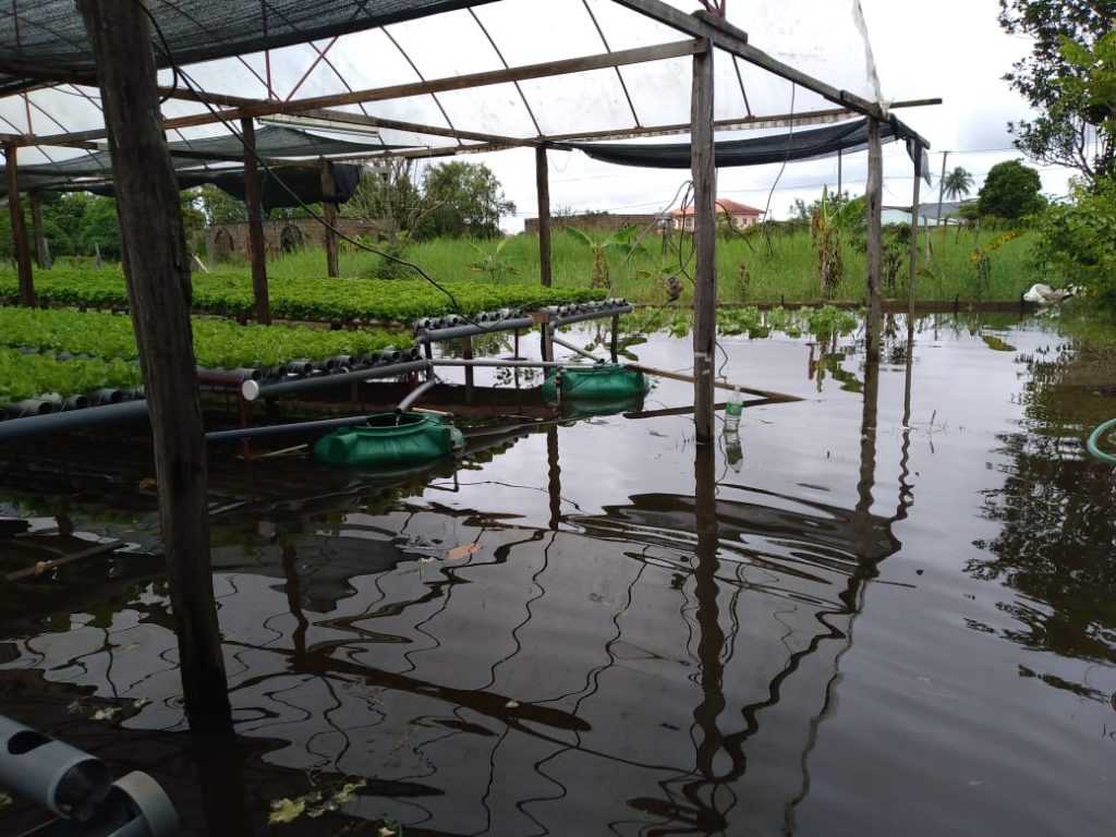 Het bedrijf Green Grow Garden aan de Gadjerieweg te Paramaribo is zwaar getroffen door wateroverlast. Het bedrijf teelt onder andere hydroponics sla, tomaat, paprika en kool.