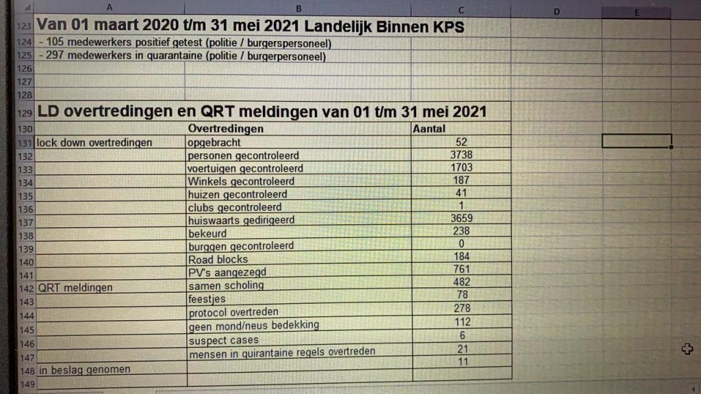 Dagblad Suriname heeft de minister benaderd met de vraag hoeveel personen de afgelopen total lockdown-dagen zijn aangehouden en/of beboet. In reactie ontving de redactie een overzicht over de maand mei en niet de meest recente juni-cijfers. Overigens blijkt, dat er in de maand mei slechts 20 processen-verbaal zijn aangezegd per dag.