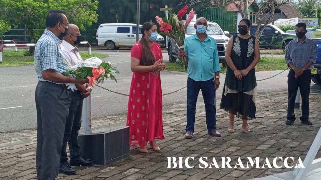 Bloemen werden zaterdagochtend 5 juni gelegd bij het Lalla Rookh Monument te Groningen in het kader van 148 jaar Hindostaanse Immigratie. De bloemenhulde werd verricht door districtscommissaris Sherin Bansi-Durga samen met de bestuursleden van de Stichting Hindostaanse Immigratie.