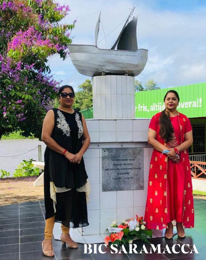 Bloemen werden zaterdagochtend 5 juni gelegd bij het Lalla Rookh Monument te Groningen in het kader van 148 jaar Hindostaanse Immigratie. De bloemenhulde werd verricht door districtscommissaris Sherin Bansi-Durga samen met de bestuursleden van de Stichting Hindostaanse Immigratie.
