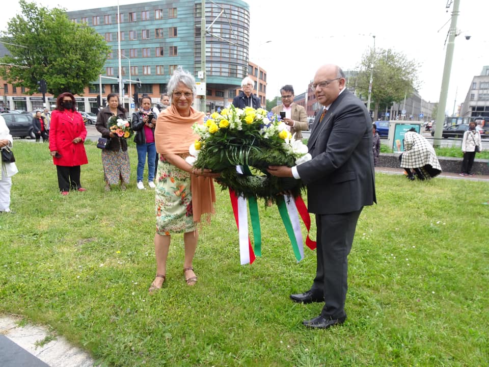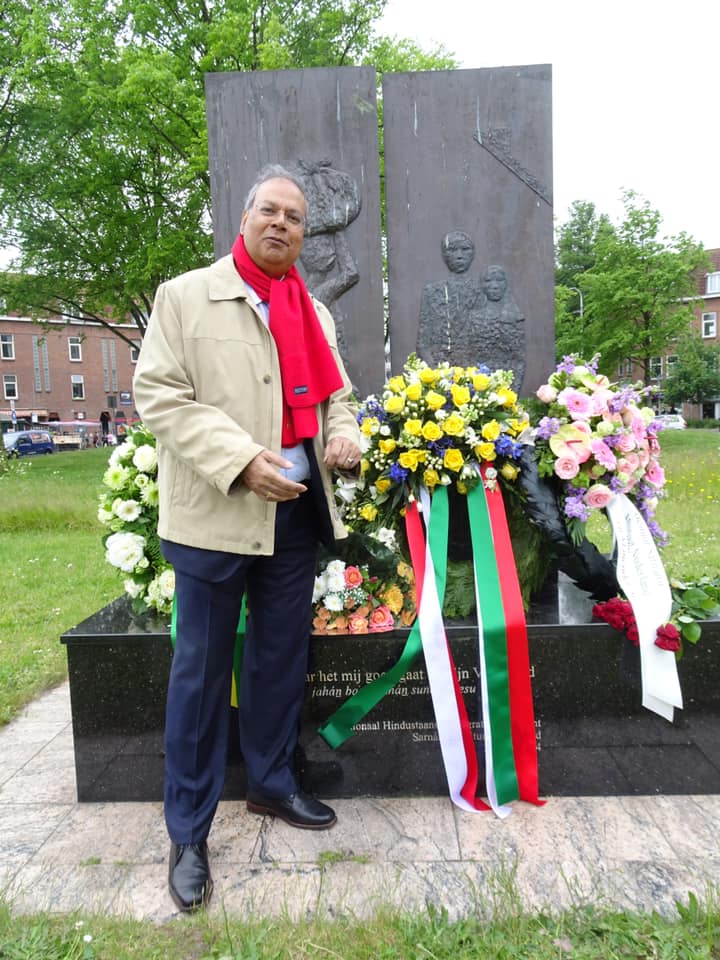 In het kader van 148 jaar Hindostaanse immigratie werden zaterdag 5 juni bij het Nationaal Hindostaans Immigratie-monument op het Hobbemaplein in Den Haag kransen gelegd door onder andere de oud-wethouder Rabin S. Baldewsingh.