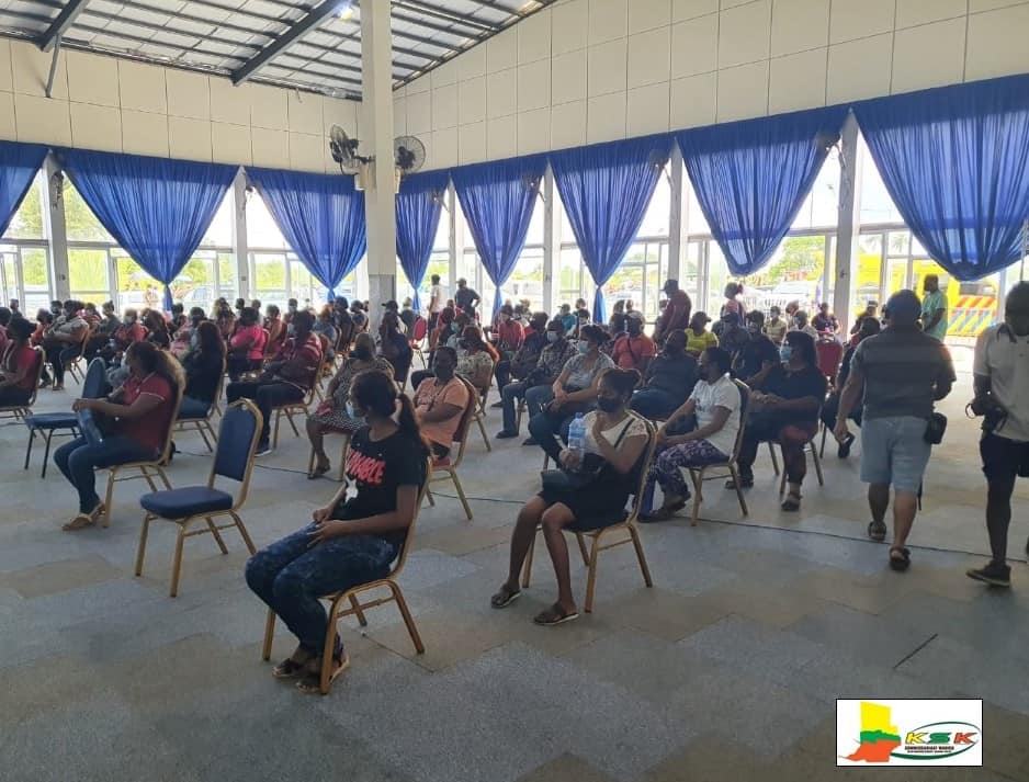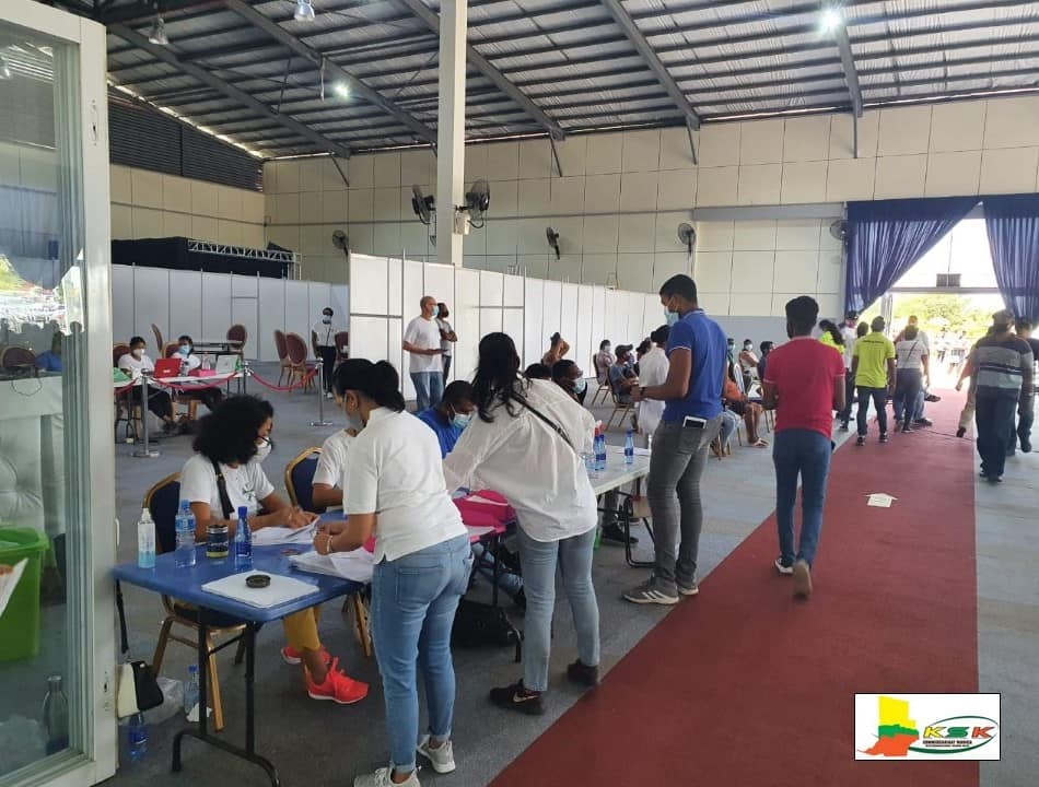 In het Roeli’s Event Venue aan de Kronenburgweg was zaterdag de mogelijkheid om zich te laten vaccineren. Een medisch gespecialiseerd team en een groep vrijwilligers, de districtsraad- en ressortsraadsleden en de bestuurdienst van het commissariaat Wanica Noord-West hebben zich ingezet om de grote groep burgers, die massaal gehoor gegeven hebben aan de vaccinatie-oproep, te helpen opvangen, begeleiden, registreren vaccineren en observeren, zo meldt het commissariaat.