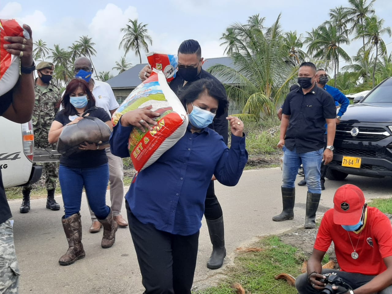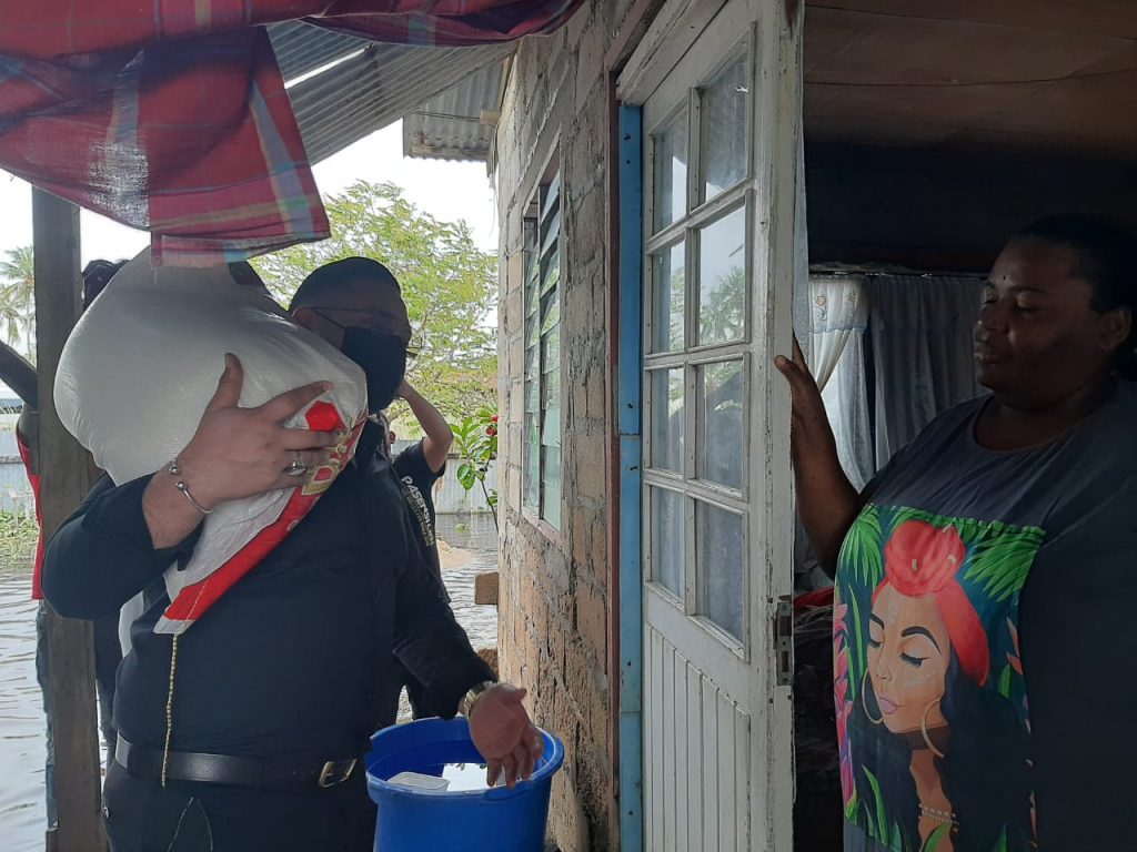 De ministers van Defensie, Krishna Mathoera, en Uraiqit Ramsaran van Sociale Zaken en Volkshuisvesting, zijn zaterdag 12 juni gestart met het uitdelen van voedselpakketten aan behoeftige mensen in het district Coronie. Vele gebieden in dit district zijn onder water gelopen als gevolg van aanhoudende regens. Ook de mensen die getroffen worden door de Covid-19-pandemie krijgen een steunpakket.