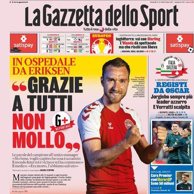 ā€˜Bedankt voor jullie steun. Ik zal niet opgeven’, zo citeert Schoots de middenvelder maandag 14 juni in de Italiaanse sportkrant La Gazzetta dello Sport. ā€˜Ik voel me beter, maar ik wil begrijpen wat er met mij gebeurd is. Ik wil tegen iedereen dankjewel zeggen voor alles wat jullie voor mij hebben gedaan.’