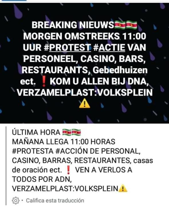 Voorzover bekend, is het aangekondigde protest vrijdagochtend overigens niet doorgegaan. Districtscommissaris Ricardo Bhola van Paramaribo Noord-Oost heeft niet gereageerd op de vraag van Dagblad Suriname of hij bekend was met het op social media aangekondigd protest ofwel of er een vergunning voor was aangevraagd en/of verstrekt.