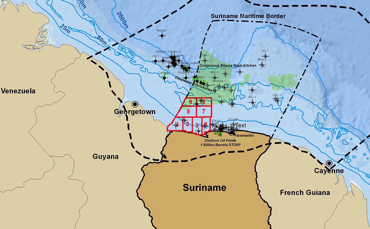 Ook in de Surinaamse near-shore blokken zullen boringen worden gedaan. Staatsolie is nu in onderhandeling over de productiecontracten voor Chevron voor Blok 5 en het Total-Qatar Petroleum-consortium voor Blok 6 en 8. Deze blokken liggen vlak voor de Surinaamse kust. Staatsolie nodigde in november vorig jaar bedrijven uit om te bieden op exploitatierechten in acht offshore ondiep water blokken. Bedrijven, waaronder Total en Petronas uit Maleisiƫ, hebben inmiddels al vondsten gedaan in de off shore blokken. Buurland Guyana is inmiddels de nieuwste energie hotspot ter wereld geworden nadat de olieproductie eind 2019 begon.