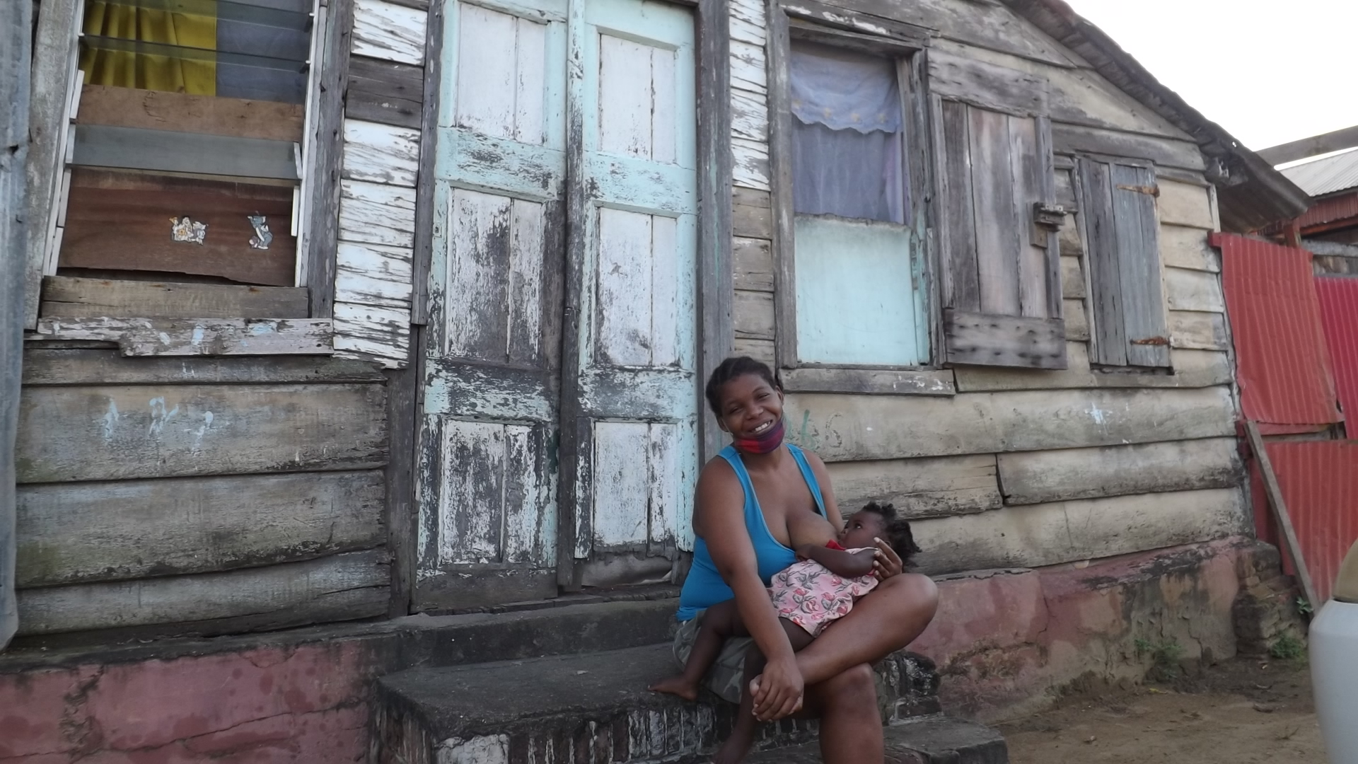 âWij zijn voor de deur om te genieten van de zon en voorbijgangers. Het heeft de afgelopen dagen flink geregend. Ik heb al mijn kinderen borstvoeding gegeven. Moedermelk is de beste voeding voor kinderen. Het is een uiting van liefde voor mij en mijn kind. Het maakt ze sterk. Kijk maar naar mijn jongste. Ze is gezond, ziet er vredig en schattig uit.â
