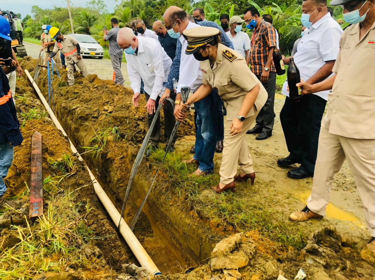 Hedenochtend is het startsein gegeven voor de aanleg van waterleiding buizen aan de Shabier Isaakweg, in het Ressort Jarikaba ten behoeve van het Algemeen Crematieoord Uitkijk. De Shabier Isaakweg is ongeveer 3KM lang, waarvan slechts de eerste 300M voorzien is van waterleiding d.m.v. 2 duim buizen. De Surinaamse Waterleiding Maatschappij zal nu de hele weg voorzien van 4 duim waterleidingbuizen.