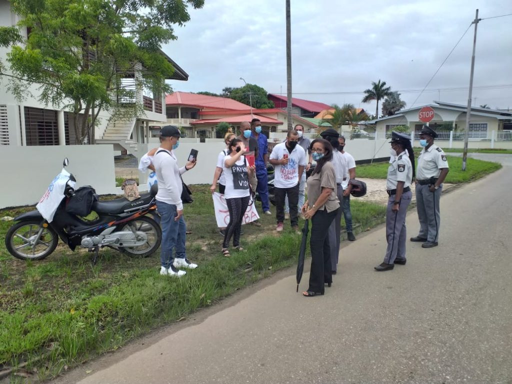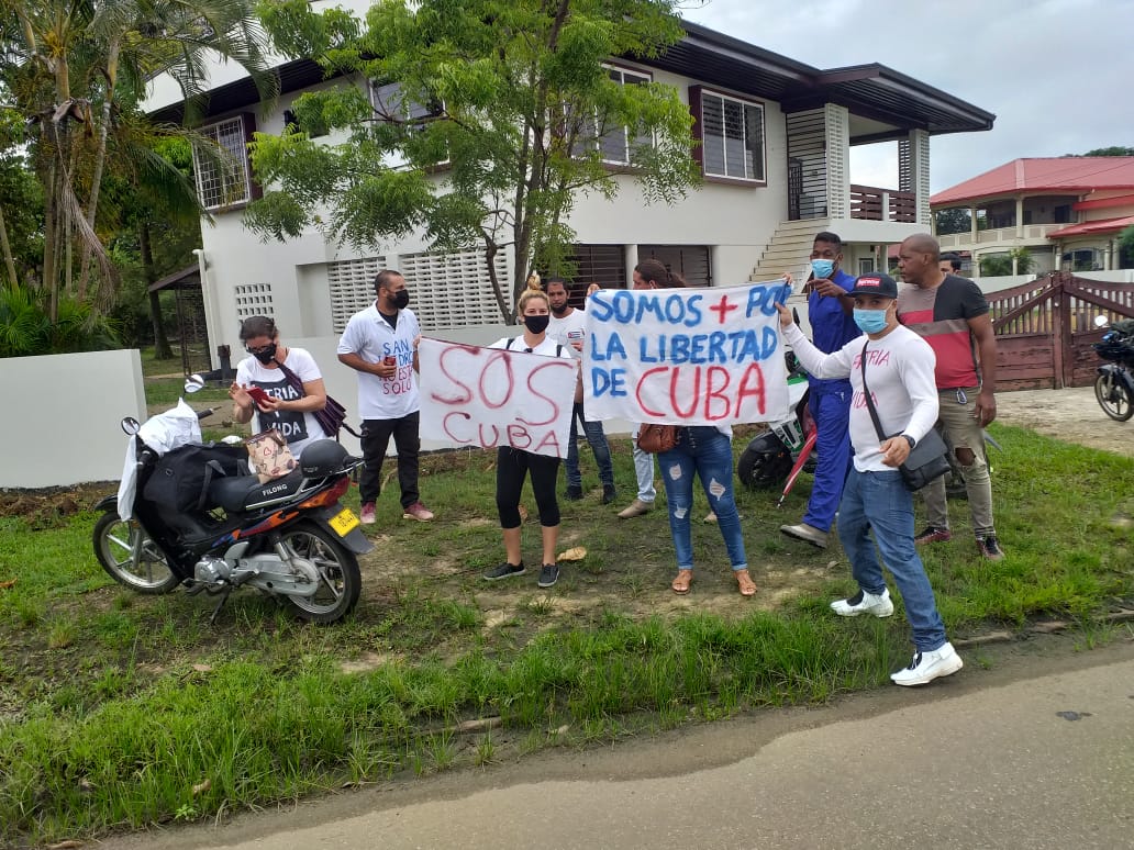 Een handvol Cubanen is maandagmorgen 12 juli getogen naar de ambassade van Cuba in Paramaribo om te protesteren tegen de Covid-19 noodtoestand op Cuba.