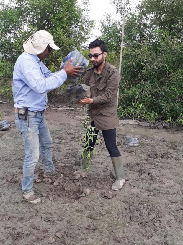 Het mangroveproject van professor Sieuwnath Naipal gaat onverkort door. In het afgelopen weekend heeft hij samen met vrijwilligers mangrovebomen geplant bij de kust van Paramaribo, niet ver van de Brantimakkaweg te Weg naar Zee.