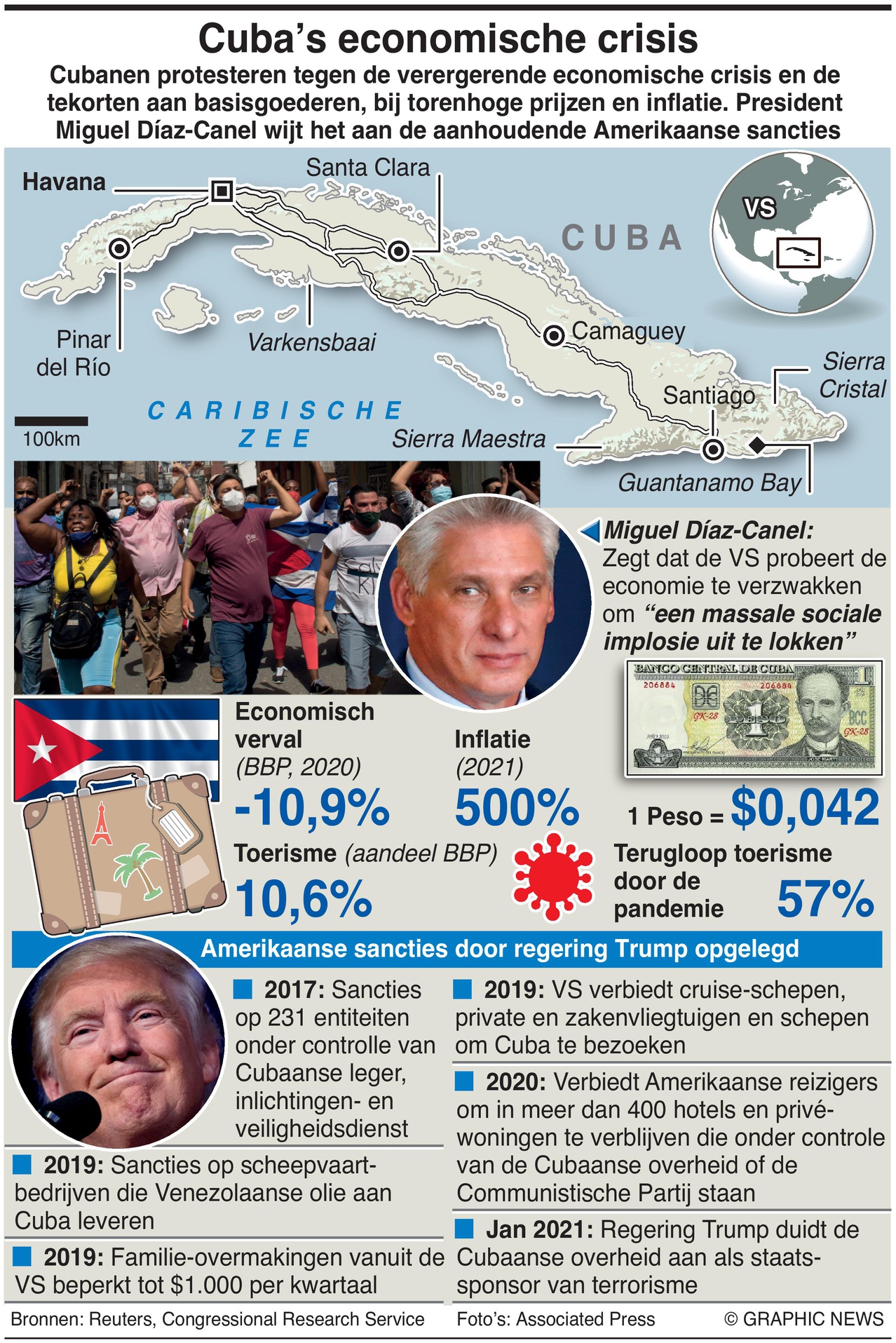 Cubanen protesteren tegen een verslechterende economische crisis en tekorten aan essentiĂ«le goederen te midden van torenhoge prijzen en inflatie. President Miguel DĂaz-Canel wijt de aanhoudende Amerikaanse sancties.