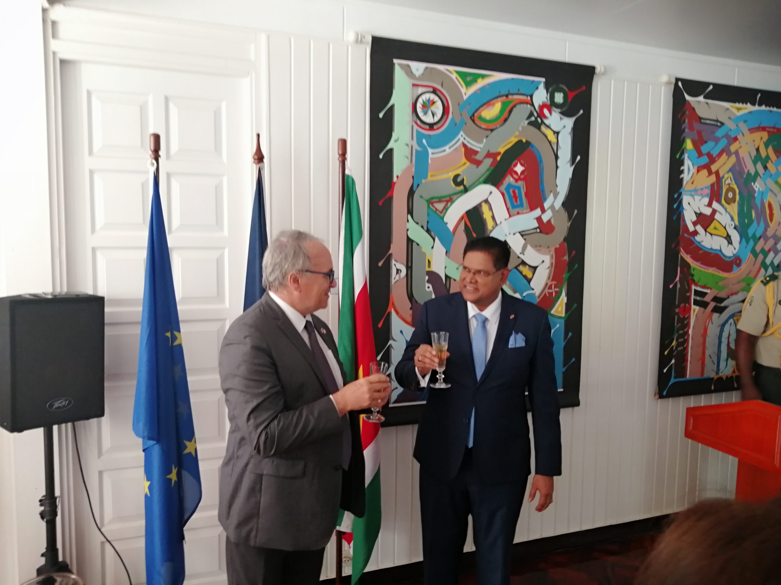 Op zijn residentie hield Joly een toespraak waarvoor president Chandrikapersad Santokhi en vicepresident Ronnie Brunswijk uitgenodigd waren. Diverse andere ministers van Surinaamse zijde en leden van De Nationale Assemblée waren eveneens aanwezig.