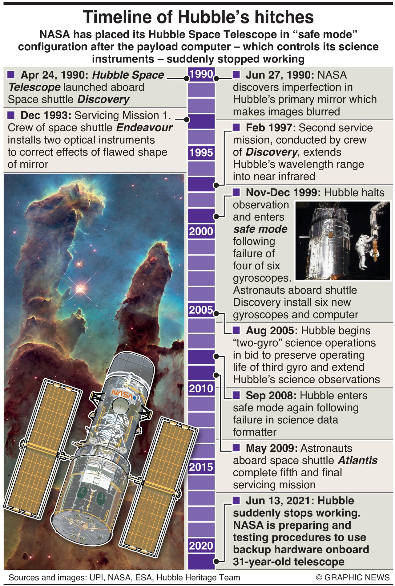 “Vrijwel alles op Hubble is volledig redundant, wat betekent dat er een back-up is als er iets mislukt”, zei NASA’s astrofysica-directeur Paul Hertz. “We kunnen niet precies zeggen wat er mis is, maar we denken dat het een storing is in een onderdeel dat we proberen te isoleren.”